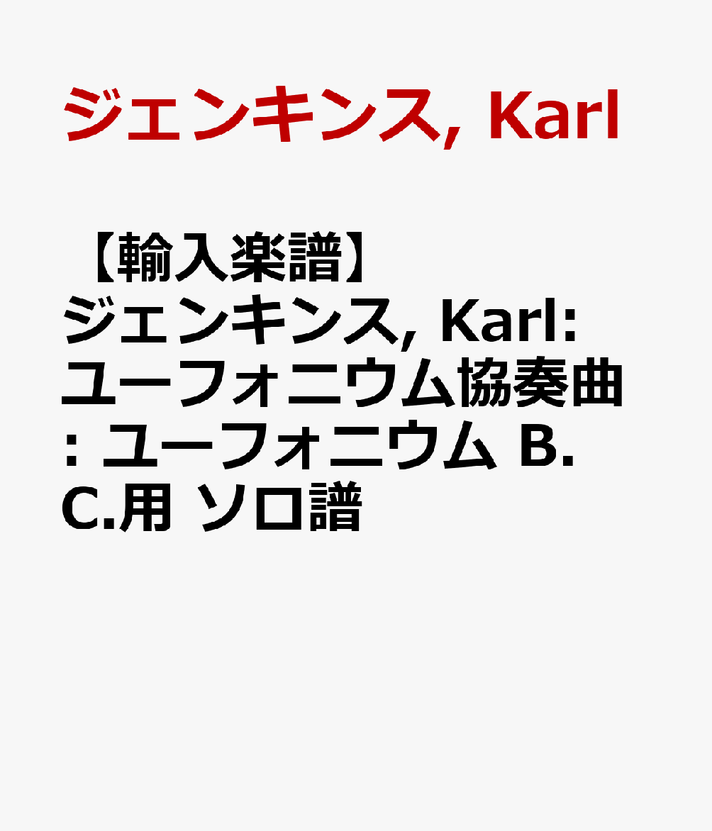 | 2069. |  | 【輸入楽譜】ジェンキンス, Karl: ユーフォニウム協奏曲: ユーフォニウム T.C.用 ソロ譜 ジェンキンス, Karl(著) ブージー & ホークス社/ロンドン (1970年01月01日頃) 価格:3080円 レビュー:評価はまだありません | 本を登録 |
